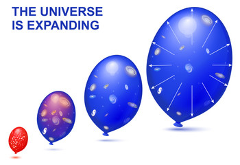 According to the theories of cosmology, the universe is expanding since its creation from the Big Bang. A good way to visualise this expansion is to compare space with the surface of an expanding balloon. Arthur Eddington in 1933 used this analogy in which a balloon with many dots marked on its surface is blown up. As it inflates, the distances between the dots increase in the same way as the distances between the galaxies.